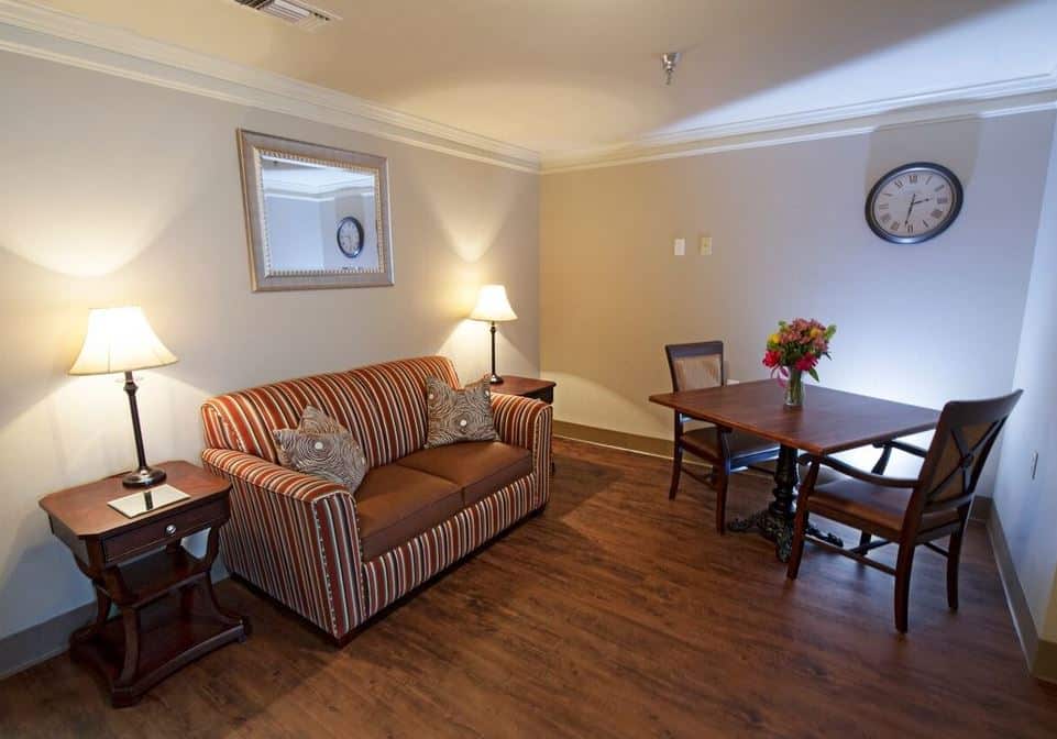 - Comfortable, Home-Like Setting — Residents enjoy private or semi-private rooms with phone and cable, inviting common areas, dining rooms, outdoor patios or courtyards, and shared spaces for socializing.